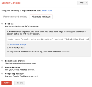 - Go back to the Google Webmaster Tools dashboard, the same place you copied that verification code, and click the red “Verify” button.